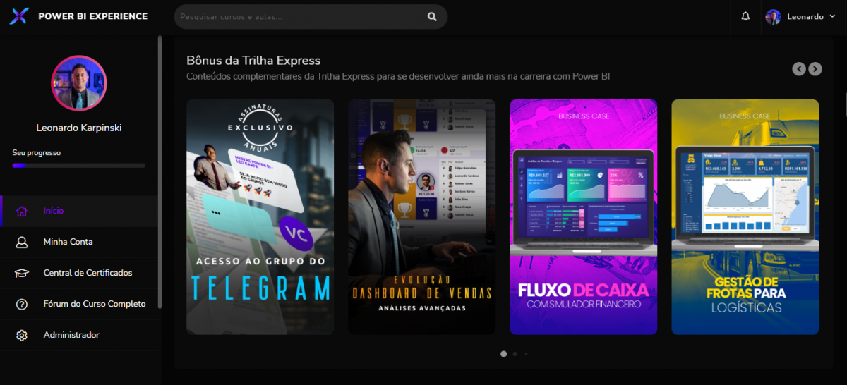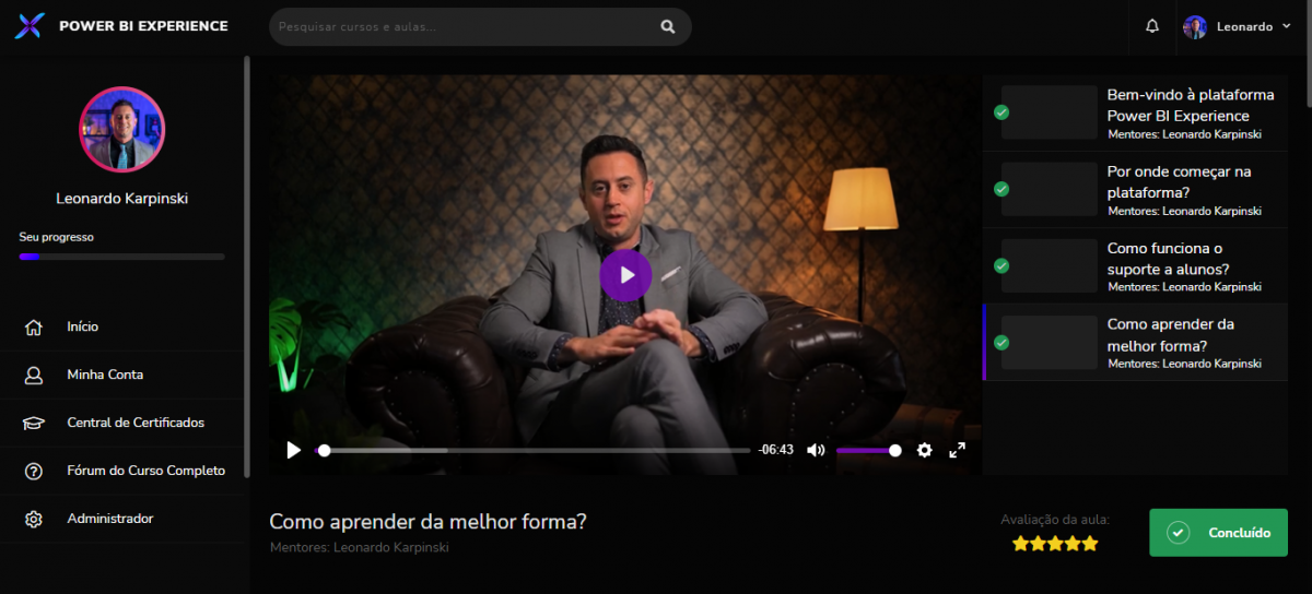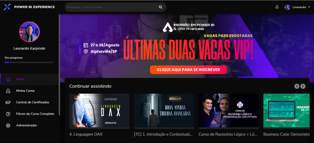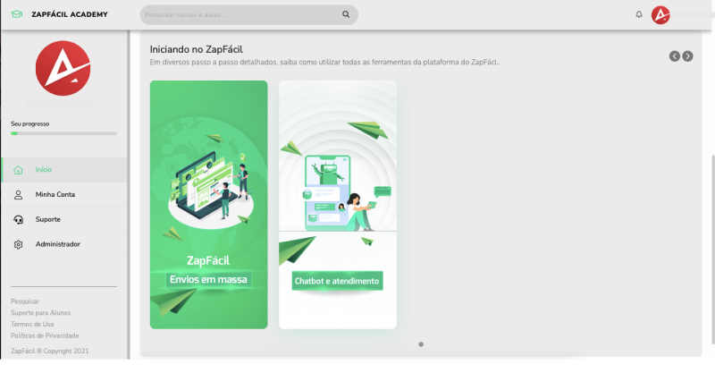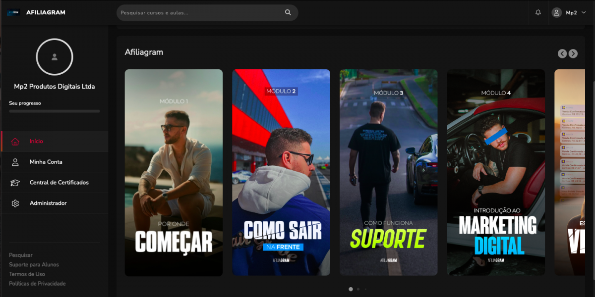 proporciona é incrível, sem falar no painel de administração que é super fácil de incluir cursos! "